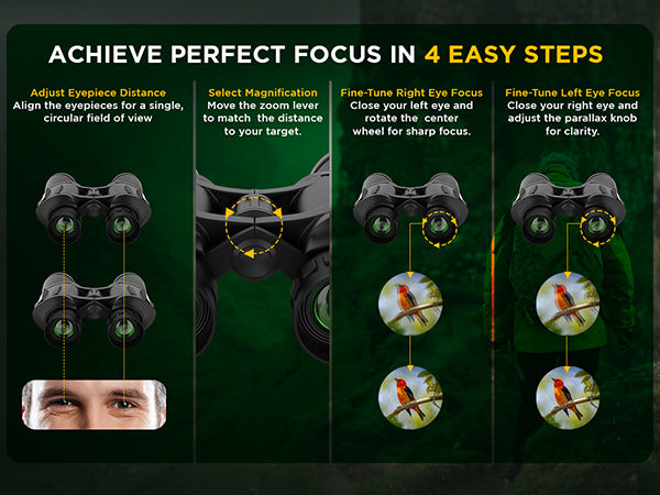 【EASY FOCUS BINOCULARS】- Our binoculars 20x50 are perfectly designed to fit both adults and children. They come with adjustable twist-up eyecups, which ensure comfortable viewing whether with or without eyeglasses. The center-focus knob of these compact binoculars guarantees fast and highly precise focusing. Additionally, they can be used with a phone bracket, which ensures a stable camera image when photographing. SAFETY INFORMATION: Do not use these binoculars to look at the intense light or the sun.