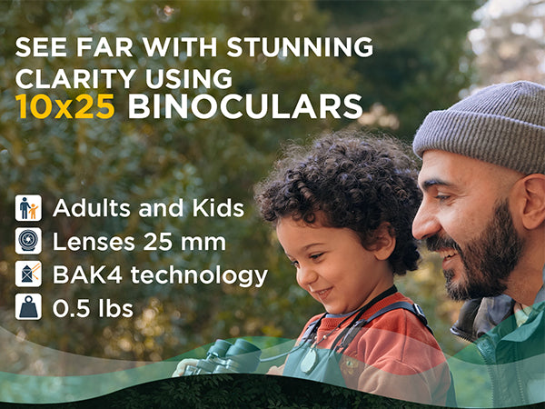 - 【EASY FOCUS BINOCULARS】Binoculars for adults and kids. These binoculars are fully competent and can be used for bird watching, hunting, hiking, travel, sports events, theater, and concerts. They are also ideal great gifts for Christmas, Father's Day, and boys' and girls' gifts. SAFETY INFORMATION: Do not use these binoculars to look at the intense light or the sun.